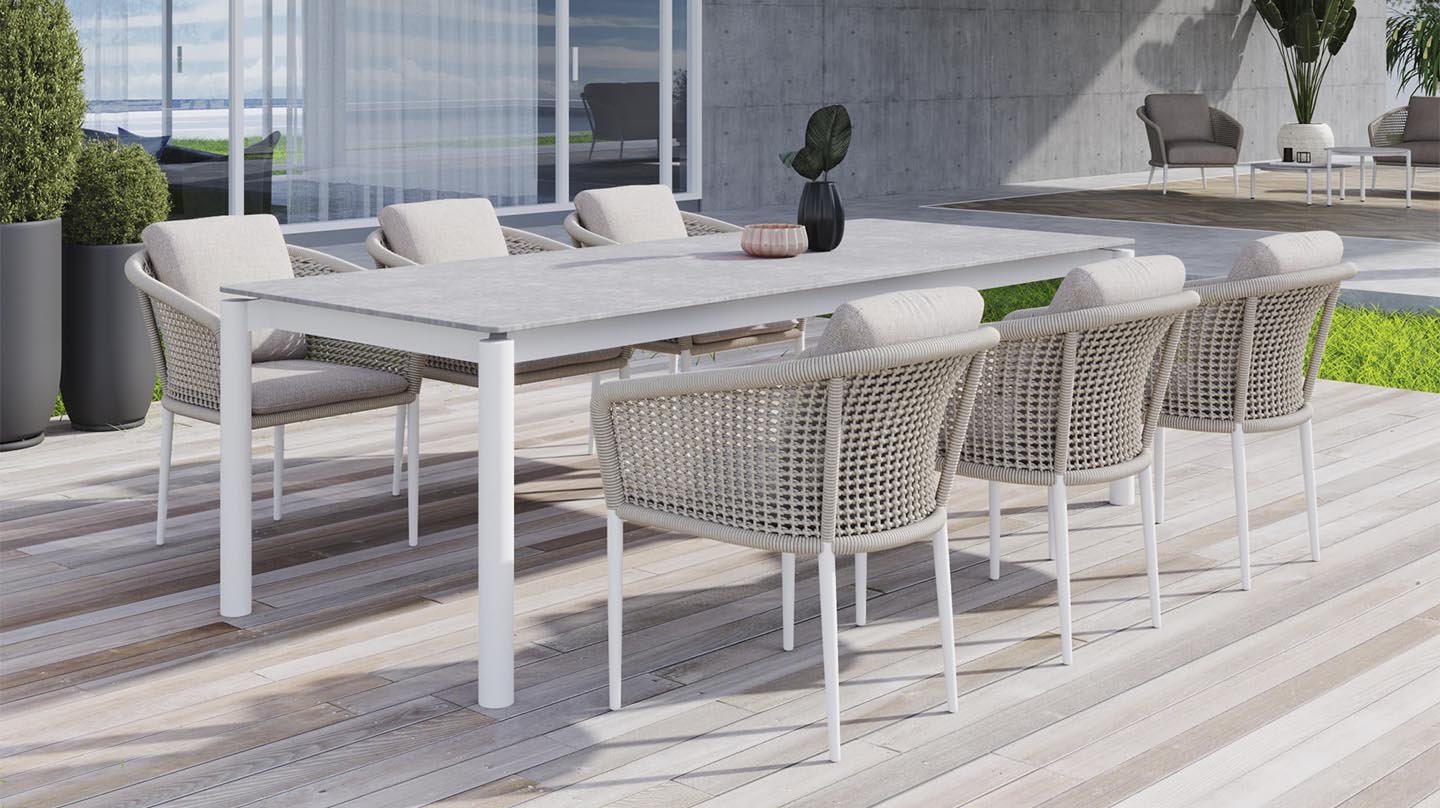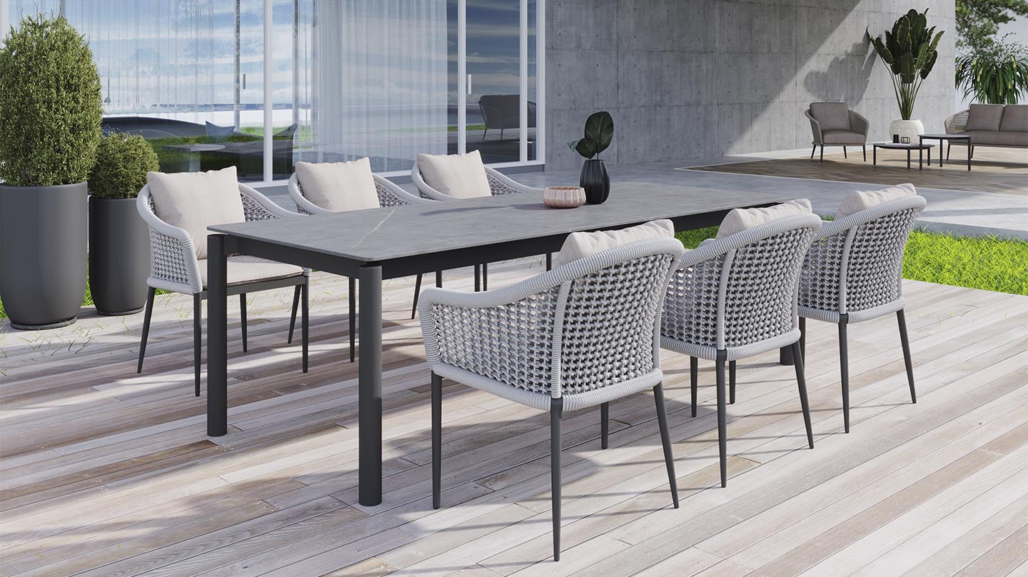 Fully upholstered outdoor furniture. sitcomfort and beauty are the core of our product range, and are present throughout in every part of our design and manufacturing process.