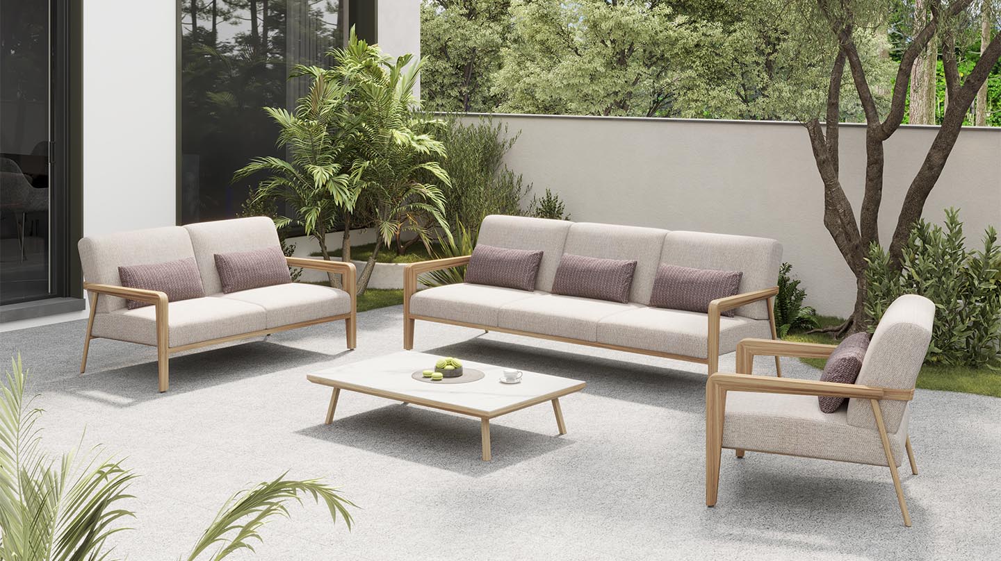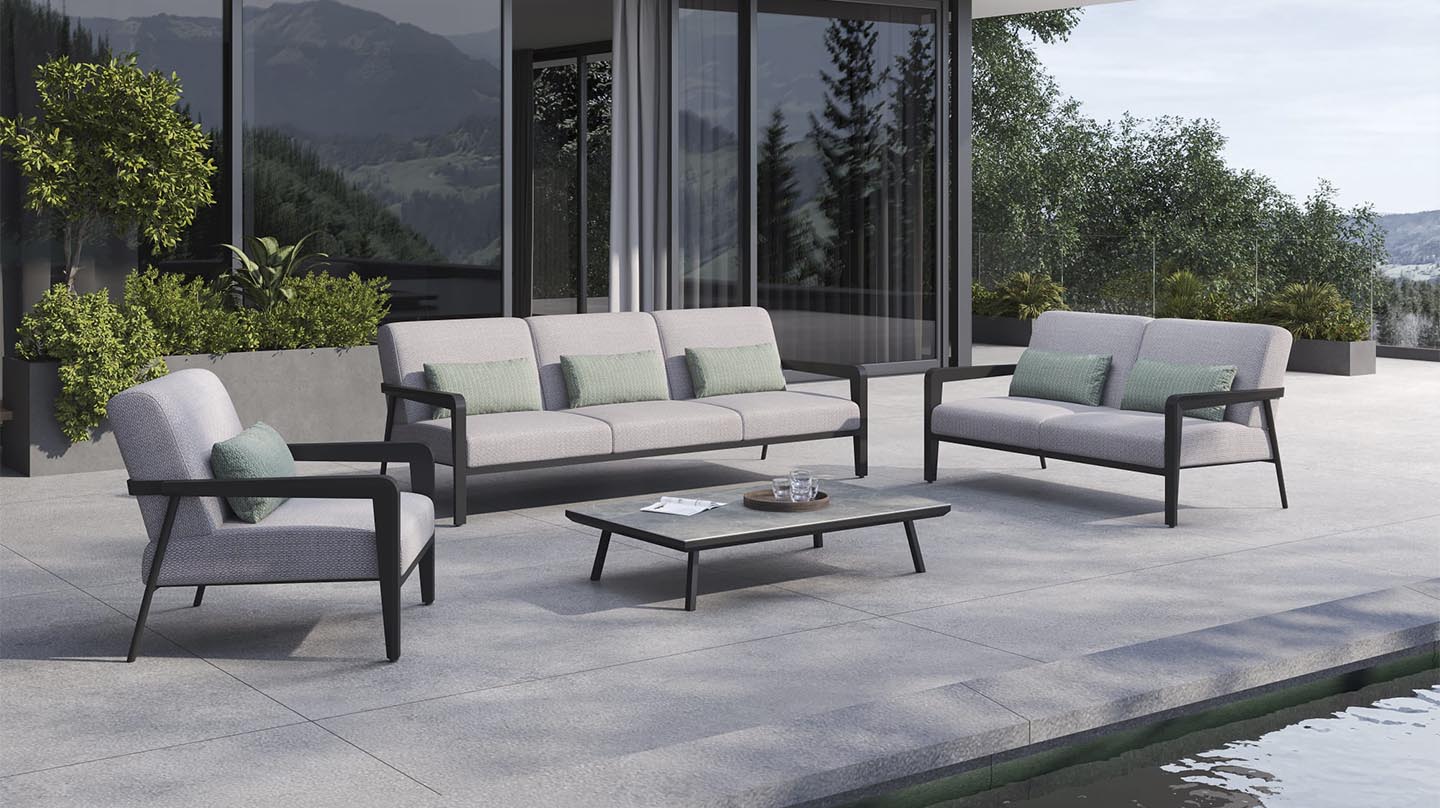 Fully upholstered outdoor furniture. sitcomfort and beauty are the core of our product range, and are present throughout in every part of our design and manufacturing process.